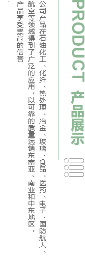 公司產(chǎn)品在石油化工、化纖、熱處理、冶金、玻璃、食品、醫(yī)藥、電子、國(guó)防航天、航空等領(lǐng)域得到了廣泛的應(yīng)用,